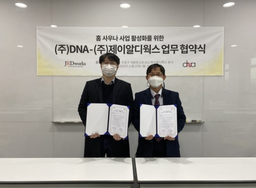 스마트 홈조리원 서비스 전문기업 ‘㈜제이알디웍스(대표 윤진환)’가 열선 기술기업 ‘㈜DNA’와 업무협약을 맺고 홈사우나